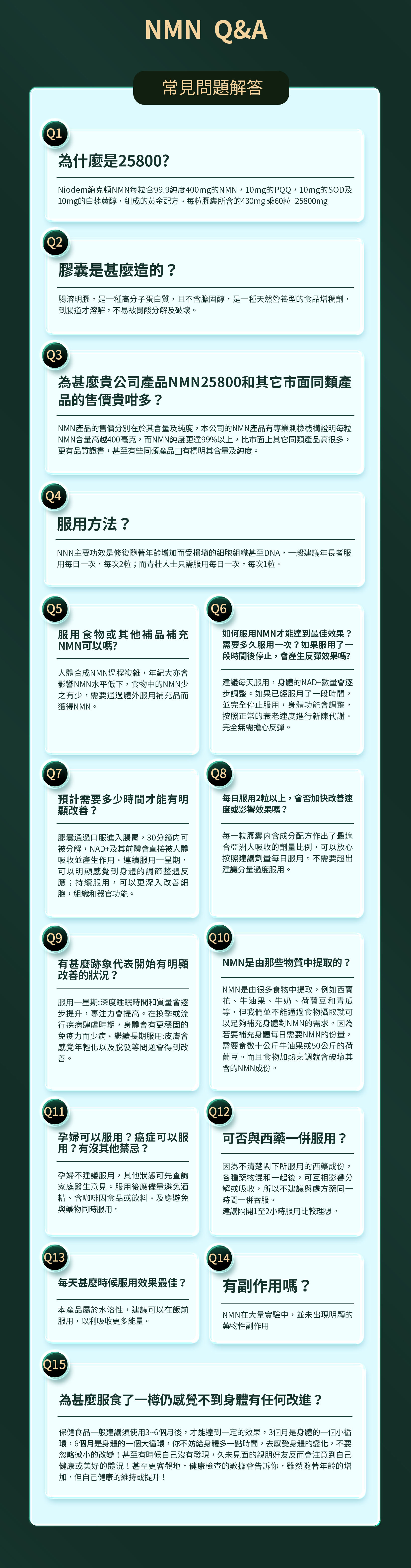 NMN(β–煙醯胺單核苷酸)每粒含400mg NMN,SOD,PQQ,白藜蘆醇,微晶纖維素,二氧化硅,硬脂酸鎂