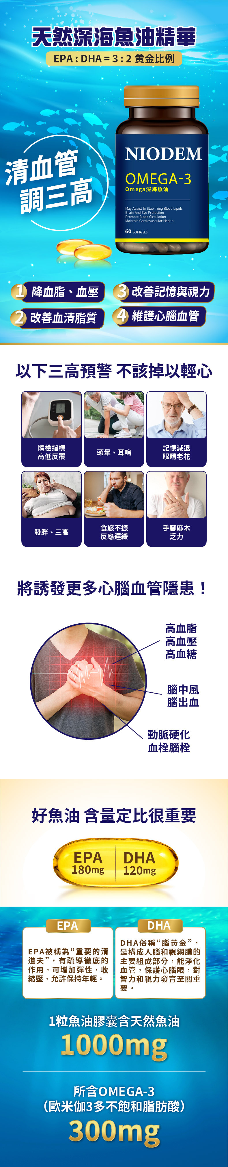 天然深海魚油精華(每粒含EPA 180mg,DHA 120mg)