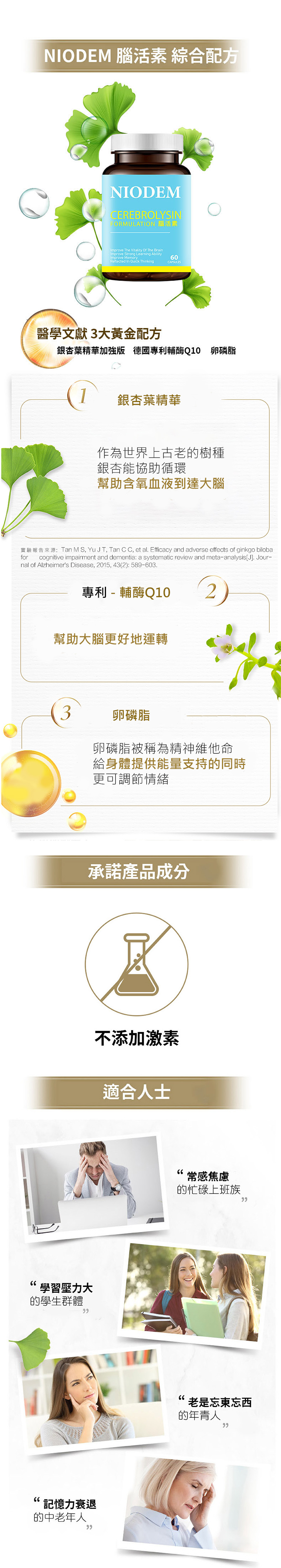 採用醫學文獻的黃金配方, 結合3大高效活腦成份–銀杏、 卵磷脂及輔酶Q10, 有效強化大腦功能, 改善記憶力, 專注力及促進腦部血液循環。
